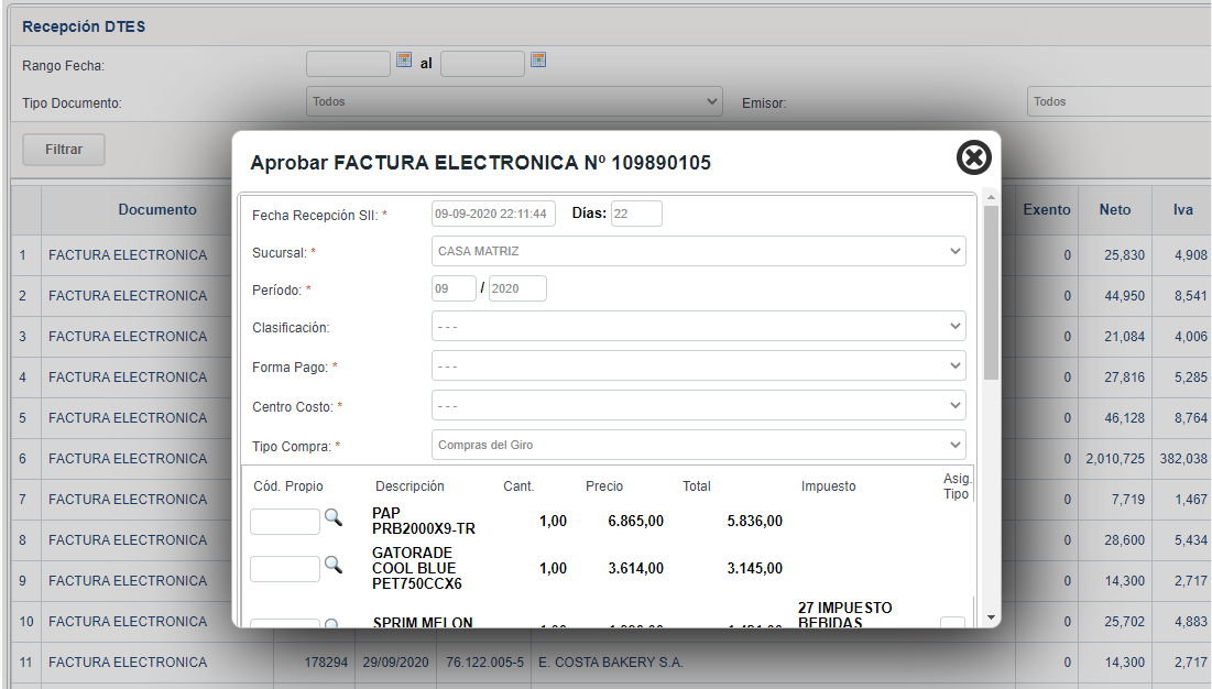 Permite recibir los distintos tipos de documentos electrónicos de proveedores incrementando automáticamente el inventario, además deja el documento Aprobado automáticamente en el SII.
